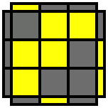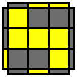 OLL(Orientation of the Last Layer)은 3층 조각들의 방향(orientation)을 모두 맞추는 공식입니다. 흰색 크로스 기준으로 윗면을 모두 노란색으로 만듭니다.